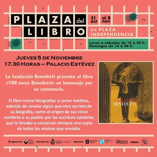 Presentación del libro «Cien veces Benedetti» en Plaza del Libro (Plaza Independencia). Además de los panelistas locales, nos acompañará desde Nicaragua el Premio Cervantes, y amigo de la fundación, Sergio Ramírez.