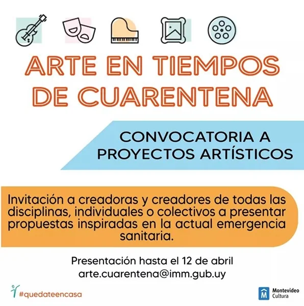 Inscripción hasta el 12 de abril en https://montevideo.gub.uy/noticias/cultura/arte-en-tiempos-de-cuarentena