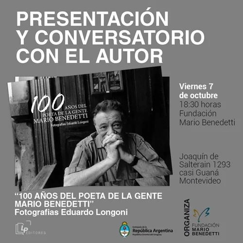 Este viernes 7 de octubre a las 18:30 horas, les esperamos para la presentación del libro «100 años del poeta de la gente, Mario Benedetti», del fotógrafo Eduardo Longoni.