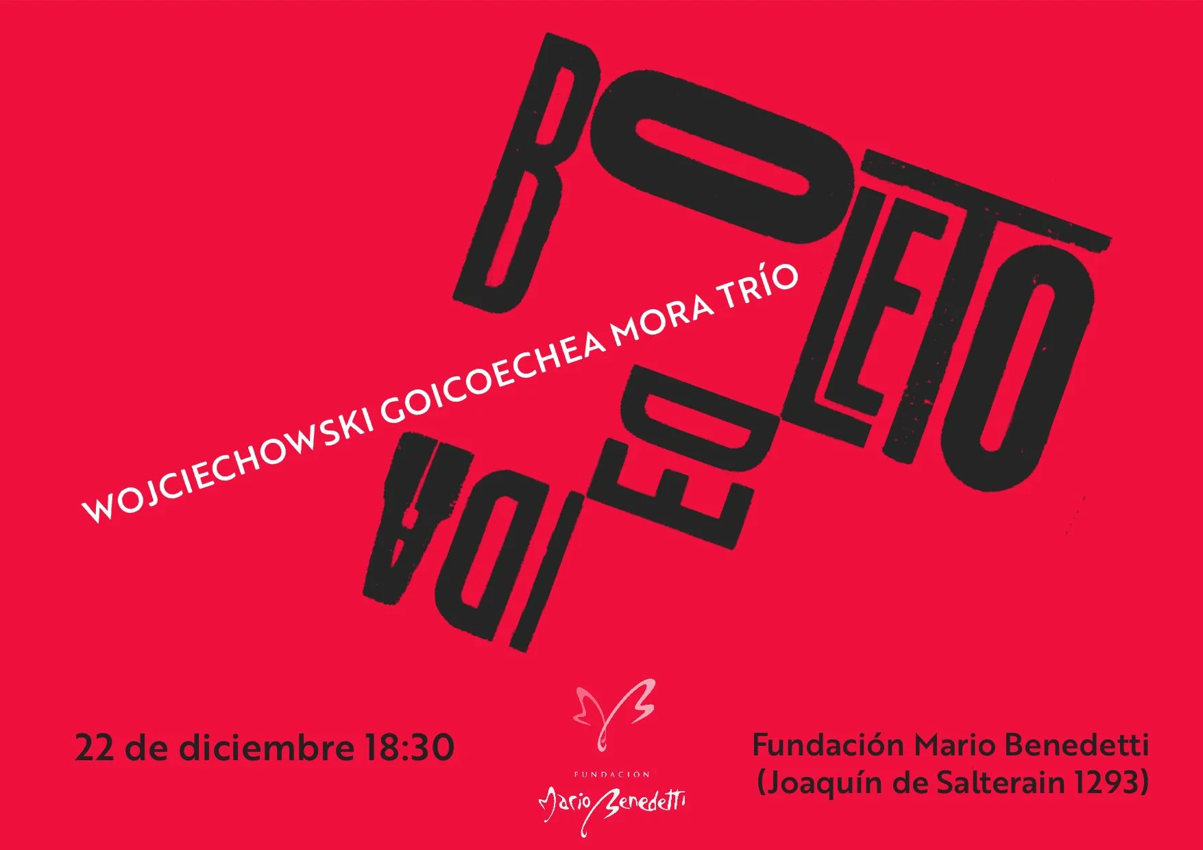 El jueves 22 de diciembre a las 18:30 horas, les invitamos a la Fundación Mario Benedetti para la presentación del disco «Boleto de ida», de Wojciechowski- Goicoechea- Mora trío.
