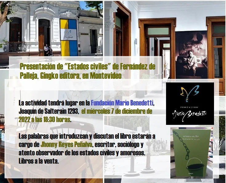 El miércoles 7 de diciembre a las 18:30 horas, les invitamos a la Fundación Mario Benedetti para la presentación del libro «Estados civiles» de Ignacio Fernández de Palleja. Presenta: Jhonny Reyes Peñalva.