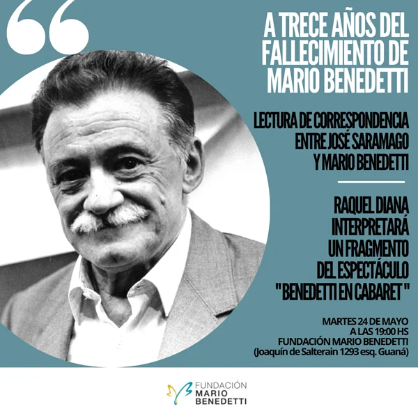 En conmemoración de los trece años del fallecimiento de Mario Benedetti, el martes 24 de mayo a las 19:00 horas, realizarémos una actividad especial en la sede de la Fundación.