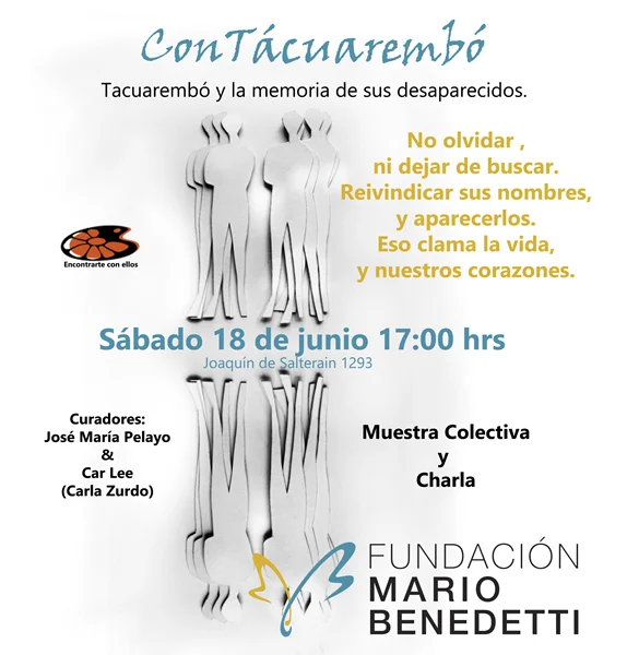 El sábado 18 de junio a las 17:00 horas, Carla Zurdo y José Pelayo, curadores de la muestra «Encontrarte con ellos (ConTácuarembó)» que se encuentra en nuestra sede, realizarán una charla y reproducirán videos con testimonios de integrantes de Madres y Familiares de Detenidos Desaparecidos.