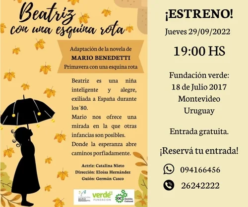 Queremos invitarlos, el jueves 29/9, a la presentación de la puesta Beatriz con una esquina rota.