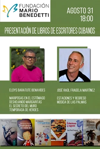 El miércoles 31 de agosto a las 18:00 horas les esperamos para la presentación de los libros de los escritores cubanos, Eldys Baratute y José Raúl Fraguela Martínez. Ambos escritores son destacados por escribir sobre los diferentes problemas que atraviesan los adolescentes y jóvenes en la sociedad actual.