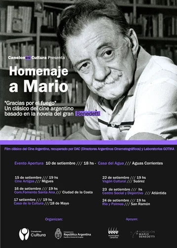 Canelones Cultura homenajea a Mario con la proyección del film «Gracias por el fuego» en diferentes ciudades del departamento.