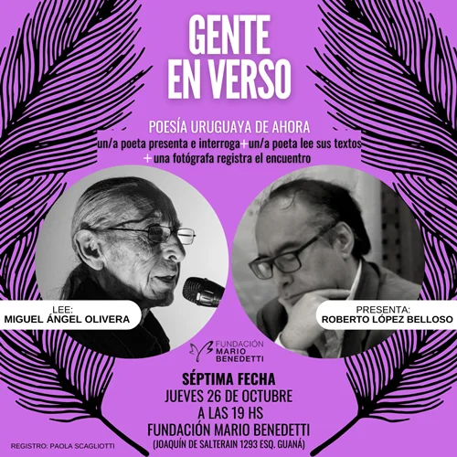Les invitamos a la séptima fecha de “Gente en verso. Poesía uruguaya de ahora”, ciclo organizado por la Fundación Mario Benedetti, y que va el último jueves de cada mes.