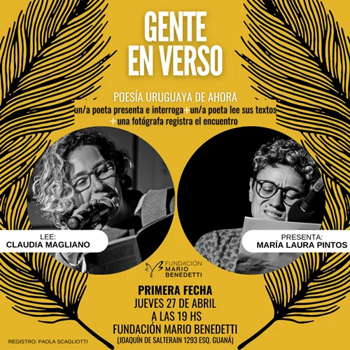 Tenemos el agrado de anunciar “Gente en verso. Poesía uruguaya de ahora”, ciclo organizado por la Fundación Mario Benedetti, y que irá el último jueves de cada mes.