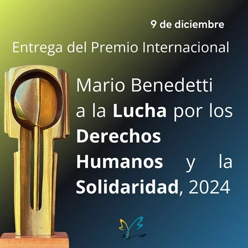 📅 El próximo 9 de diciembre a las 19:30 h, la Fundación Mario Benedetti entregará el Premio Internacional Mario Benedetti a la Lucha por los Derechos Humanos y la Solidaridad 2024.