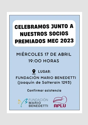 La cita es para el día miércoles 17 de abril a las 19:00 hs en la sede de Fundación Mario Benedetti (Joaquín de Salterain 1293 esq. Guaná)