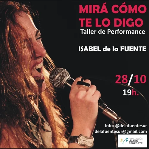 Isabel de la Fuente, poeta, actriz, y gestora cultural. Egresó de la Escuela de Acción Teatral Alambique y estudió Licenciatura en Letras en la FHCE. Trabaja en teatro, espectáculos multidisciplinarios y performances. Es docente de taller literario, de teatro y creadora del Seminario Cuerpo de Letra (Escritura en Movimiento y Performance) y del Taller de Performance Mirá cómo te lo digo. Obras suyas se incluyen en diversas publicaciones y antologías, y ha publicado El silencio que nadie, Mal puñal, Antología de Poesía Portuguesa Contemporánea, entre otros. Realizó diversas muestras de poesía visual y de poesía y plástica. Desde 1996 coordina el Ciclo Literario CaRAMELOS y PiMIENTOS. Ha participado en Festivales de Argentina, Brasil, Uruguay, Estados Unidos, Italia y Austria. Premio Morosoli en Literatura, 2005. 2° Prix Molière, 2003. Primer Premio en el 9° y en el 10° Encuentro de Teatro Joven, 1999 y 2000.